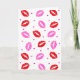 Kiss Lips Pink Red Hearts Greeting Carfd Holiday Card