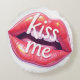 Kiss Me Glossy Red Lips Art Illustration Round Cushion