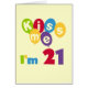Turning 21? You'll love our Kiss Me I'm 21 birthday t shirts, mugs, cards, stickers, magnets, keychains, and other 21st birthday gear with a bright multicolored balloon and text design.