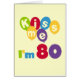 Turning 80? You'll love our Kiss Me I'm 80 birthday t shirts, mugs, cards, stickers, magnets, keychains, and other 80th birthday gear with a bright multicolored balloon and text design.