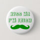 Kiss Me I'm Irish funny St Patricks Day party round pinback buttons for men and women. Cool Irish pride badges with humourous quote and green moustache. Also available on clothing, cheap DIY supplies and other bulk accessories. Customisable text template. Add your own obscene, rediculous, hilarious, crazy, weird, rude, offensive saying or joke etc.