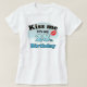 Leuk shirt met de tekst: kus me het is mijn 28e verjaardag. een kus is afgebeeld met rode lippenstift. Verder zijn de kleuren zwart en blauw. Leuk cadeau om aan iemand te geven die achtentwintig 28 is geworden, of voor jezelf om te laten zien dat je jarig bent.
