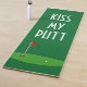 Kiss my putt funny custom yoga mat for golfer. Humourous golfing design for golf fan, yoga lessons, class trainer, coach or gym instructor. Novelty personal fitness equipment gifts for him or her. Add your own name and monogrammed initial. Sports material for yoga poses, workout and meditation. Modern typography template with putting green illustration. Personalised Birthday gift ideas for golfing men and women.