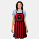 This personalised apron would make a wonderful gift for friends or family. The design has black and red vertical stripes, a red heart, and a text template that you can change. It's available in small, medium, and large.