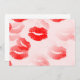 Red lips kissing on an invitation.