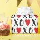 A valentine wrapping paper featuring x's and o's and red hearts in a repeating pattern. This paper is nice to have on hand not only for Valentine's Day, but also for other occasions throughout the year to express love and affection.