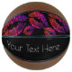 Digitally created kisses over a glittery background in shades of pink, purple, and red.