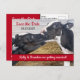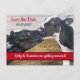This fun wedding save the date postcard has an image of two black and white kissing Holstein dairy cows on it with customisable red, black, and white lettering. You can edit all parts of this card by using the blue EDIT further option where you can change the red shapes colour, the font, and font colours to whatever you like.