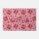 Word SMOOCH over red hearts. Kissing comic sound effect. Seamless pattern. Custom background colour. Custom text.