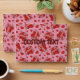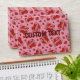 Word SMOOCH over red hearts. Kissing comic sound effect. Seamless pattern. Custom background colour. Custom text.