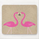 Fun, pink flamingos about to kiss on a beach sand background decorate this mousepad, making it a fun reminder of vacation time, summertime or a destination wedding. This would make a sweet gift for the bridesmaids, bride or guests at a tropical wedding.