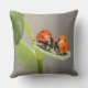 Two little ladybugs kissing on a leave on this wonderful pillow.