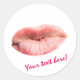 Drawing of female kissing lips. Round sticker. Customisable. You can change the image and you can change or delete the template text of dark pink colour. Have fun!
