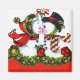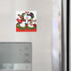 A charming vintage Christmas magnet featuring a cute snowman couple kissing under mistletoe.