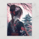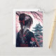 Computer-generated design of a Geisha. A picture of a woman with a nice hairstyle and flowers in her hair wearing a kimono in a simple design with light lines. Japanese design in AI - Midjourney Style. The pastel painting creates a dreamy atmosphere.