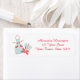 A kitchen bridal shower address label with blue and white polka dot apron and kitchen utensils tied with a pink bow. Coordinating items available. Graphics ©http://myclipartstore.com