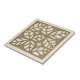 This Decorative ceramic tile features a stylised ovate leaf design. The colours are tan and cream.