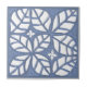Thisdecorative ceramic tile features a stylised ovate leaf design. The colours are blue and white.