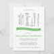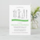 A chic vintage-style invitation for a "Stock the Kitchen" couples shower, featuring vintage cooking utensils.