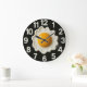 Kitchen decor modern black Fried egg Large Clock