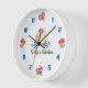 This adorable clock is great for any kitchen. In the centre there's a yellow cupcake with vanilla icing and berries. Raspberries, strawberries and blueberries. The text can be customised. Clock frames are available in white, black and brown.