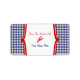A kitchen label featuring a background of blue gingham. Customisable text inside reads "From The Kitchen Of" Personalise with your name. Lobster illustration at centre. Look for matching items at Jill's Paperie.