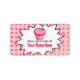 Pop art comic book inspired kitchen labels featuring a background of pink with a pink halftone pattern. Text reads "From the Kitchen of" Personalise with your name. Cupcake illustration at top. Look for matching items at Jill's Paperie.
