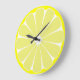 A bright yellow lemon slice decorates this clock. The design is from original art.