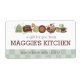 A pile of pots, pans, cooking utensils, pitchers and cups in green tones and brown on business cards, food labels or 'from the kitchen of' stickers or catering labels, recipe binders, recipe cards and more for chefs, cooking lessons, caterer or catering, and other food or culinary business.