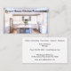 Construction and remodeling business cards template with image of a newly remodeled kitchen in the background and your company name featured on the front and your details on the flip side organised so you can customise the design online. Use our image on our cards or replace the kitchen image with your own.