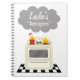 A recipe notebook featuring an illustration of a retro inspired stove sitting on a black and white surface. Red pot and pan on stove have flames shooting from them and a cloud of smoke hovers above the stove. A great way to laugh at your own lack of culinary skill....not reccomened as a gift for others! Personalise with your name.