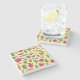 The coasters are gorgeous, a quality feel and heavy weight. They look like a precious archeological find. A rustic stone juxtaposed with a modern floral black and white print. I like the way the print goes slightly imperfect on the cut stone edges giving them a kind-of natural beauty.