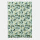 This kitchen towel is shown in a lovely blue and green tones botanical print design.