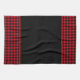 This kitchen towel is shown in a cute black and red buffalo plaid print design.