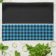 This kitchen towel is shown in a cute black and blue color buffalo plaid print design.