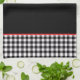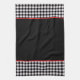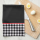 This kitchen towel is shown in a cute black and white buffalo plaid print design.