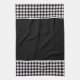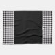 This kitchen towel is shown in a cute black and white buffalo plaid print design.
