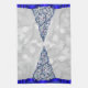 There are many stories surrounding the origins of what we now consider the "Christmas tree". Some believe the tradition began with Martin Luther. It was around 1500 and he was out of an evening walk through snowy woods when he came upon a cluster of little evergreen trees. Their dark green, snow-covered branches sparkled like diamonds in the moonlight. Once he got back home, he was inspired to bring that beauty into his home. So, he cut a small fir tree and decorated it with candles in honour of Christ's birth. This tradition was rather slow to catch on. It was not until the 1900's that Christmas trees began showing up in homes on a more regular basis. It was the Great Depression that gave birth to modern Christmas tree farms. Landscaping was a luxury and evergreens, like everything else, just weren't selling. It was these landscape nurseries that came up with the idea of cutting the trees and selling them for Christmas. It's interesting to note that folks that would NOT have spent the money to have an evergreen planted in their yard willingly paid for the cut trees in celebration of the birth of Christ. Of course, over time, candles (which had to have been extremely dangerous) gave way to strings of multicolored Christmas lights. Each country and every religion that celebrates Christmas added another element to the tree: icicles, garland, ornaments of all shapes and sizes. This beautiful, computer-generated tree is comprised of cobalt curls and swirls and dots surrounded by several sizes of "ornaments" softened jewel tones: diamonds, turquoise, amethyst, aquamarine, emerald, sapphire. It's a more contemporary interpretation of a now well-established tradition. The computer dimensionalization gives depth and sheen to the blue of the tree while the "ornaments" are filled with a digital "glitter" for a little sparkle. This lovely kitchen towel is shown in the "folded in half" orientation because I am always hanging my dish towels on the oven handle. A terrific gift, it can also be used to wrap gifts or as a stocking stuffer.