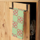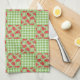 A Kitchen Towel or Tea Towel, with a pattern of cute red dragons on a green check gingham background, teamed with a matching Faux-patchwork pattern.