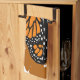 A monochrome feeding Monarch Butterfly decorates this tumeric yellow kitchen towel. The template design allows customers to adjust the background colour to match their surroundings. Should you require help please contact bea@kbmd3signs.com