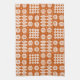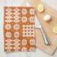 A chic Tea Towel or Kitchen Towel, with a pattern of traditional Welsh Tapestry motifs in White on a Brick Red background.