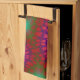 Elegant kitchen towel with red and purple, green modern abstract design. This product its customisable.