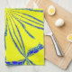 Elegant kitchen towel with blue and yellow classic abstract design. This product its customisable.