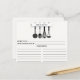 Modern Bridal Shower Kitchen Utensils Recipe Cards featuring a slotted spoon, spatula, whisk & masher with a stylish banner showcasing the text "recipe" set on a white background. The front of our recipe card offers room for a recipe title, from the kitchen of and ingredients space. Flip our recipe card over to view directions, prep time & total time. Available in our shop in a large assortment of popular wedding shower colours. Perfect bridal shower invitation insert for a stock the kitchen bridal shower.