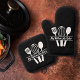 An Oven Mitt & Pot Holder Set with kitchen utensils monogram including whisk and spatula and a customisable text inside. Perfect for Mother's Day, to make a gift to your mum, a cooking or pastry chef or for newlyweds!