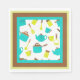 Kitchen utensils pattern with yellow-chartreuse, turquoise and solid brown coloured layers.