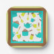 Kitchen utensils pattern with yellow-chartreuse, turquoise and solid brown coloured layers.