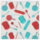 Kitchen Utensils Pattern - Red and Aqua on White Fabric
