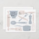 Kitchen utensils recipe cards, dusty rose blue postcard