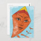 A cool, weird and unique kite postcard featuring an orange kite on a blue sky background and an unusual human face.